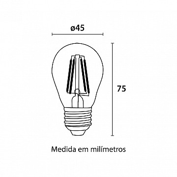 A Lâmpada Filamento LED G125 4W Da Blumenau Iluminação tem design delicado e moderno, escolha perfeita para integrar os ambientes com leveza e eficiência luminosa. Possui soquete E27 em alumínio e lente de vidro âmbar, atende as variações de tensão entre 110V e 220V.