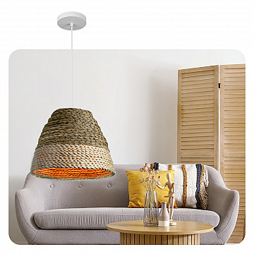 Pendente Nusa Fibra Natural 330cm - Ocre Pendente Nusa da Blumenau Iluminação transmite a essência da estética natural. Traz em sua... Marca: Blumenau Iluminação Orçar Pendente Nusa Fibra Natural 330cm - Ocre Pendente Nusa da Blumenau Iluminação transmite a essência da estética natural. Traz em sua cúpula dois acabamentos trançados desenvolvidos em palha natural e a luz vazada entre as linhas cria diferentes efeitos no ambiente. Conta com corpo em palha natural, soquete E27, produto bivolt. Acompanha kit de fixação, lâmpada não inclusa. Possui 1 ano de garantia. Os pendentes são testados em laboratório próprio e retratam excelência em seu desempenho. Empresa: Blumenau Iluminação Marca: Blumenau Iluminação
