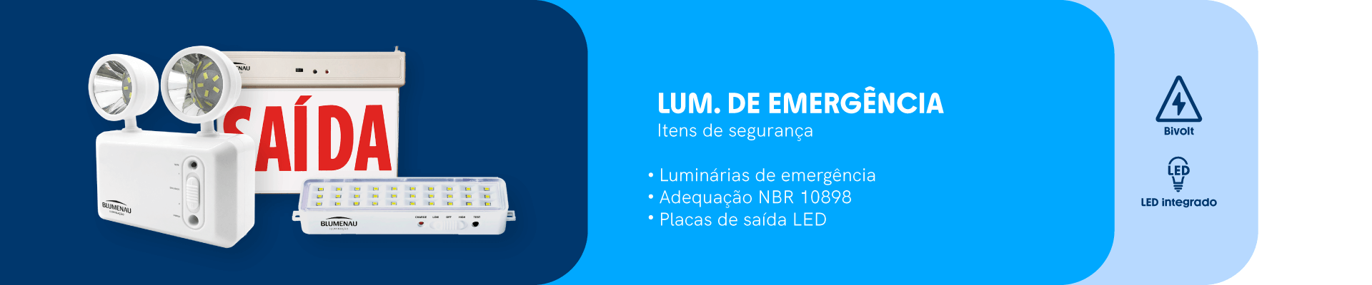 Luminária de Emergência 30 LEDs com Plug 1W 50/100lm Bivolt Luminária de Emergência LED 30 LEDs com Plug da Blumenau Iluminação é uma solução essencial... Marca: Blumenau Iluminação Orçar Luminária de Emergência 30 LEDs com Plug 1W 50/100lm Bivolt Luminária de Emergência LED 30 LEDs com Plug da Blumenau Iluminação é uma solução essencial para projetos que exigem segurança, confiabilidade e conformidade com as normas de iluminação de emergência. Indicada para ambientes residenciais, comerciais e institucionais, garante iluminação imediata em casos de queda de energia, contribuindo para a orientação e a segurança de pessoas em áreas de circulação, acessos e rotas de fuga. Com design compacto e funcional, a luminária conta com 30 LEDs e fluxo luminoso de 100 lúmens, oferecendo iluminação eficiente para cobertura de até 25 m². Possui plug integrado, que facilita a instalação e o uso no dia a dia, além de permitir reposicionamento conforme a necessidade do ambiente. A bateria de lítio garante autonomia de até 6 horas em fluxo luminoso mínimo, assegurando desempenho confiável durante situações de emergência. A Luminária de Emergência LED 30 LEDs com Plug é bivolt automática, possui temperatura de cor de 6.500 K e estrutura em polipropileno e poliestireno, materiais que proporcionam leveza e resistência. O produto está de acordo com a norma NBR 10898, atendendo aos requisitos técnicos para iluminação de emergência. Conta com 1 ano de garantia e é indicada para aplicações que exigem conformidade normativa e segurança.