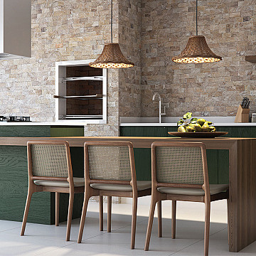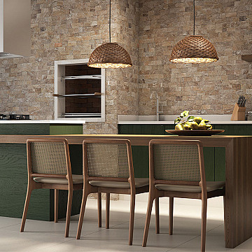 Pendente Acqua 25cm Pendente Acqua da Blumenau Iluminação possui cúpula em vidro transparente com desenho de formas... Marca: Blumenau Iluminação Orçar Pendente Acqua 25cm Pendente Acqua da Blumenau Iluminação possui cúpula em vidro transparente com desenho de formas ovais que remetem ao padrão formado pelo reflexo do sol na água. Os três pendentes também possuem capa de soque em madeira, o que complementa sua estética natural. Produto com soquete E27, bivolt. Cabo ajustável até 1,5m. Acompanha kit de fixação, possui 1 ano de garantia. Os pendentes são ótimas opções para criar uma iluminação decorativa nos ambientes, podem ser utilizados em cima de mesas de jantar, balcões, móveis de passagem ou onde desejar destacar detalhes. Os pendentes são testados em laboratório próprio e retratam excelência em seu desempenho. Empresa: Blumenau Iluminação Marca: Blumenau Iluminação