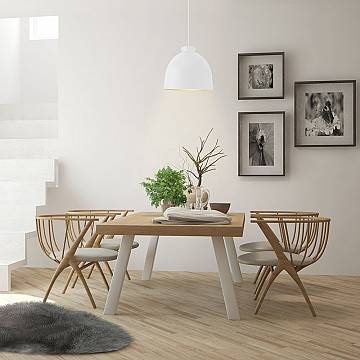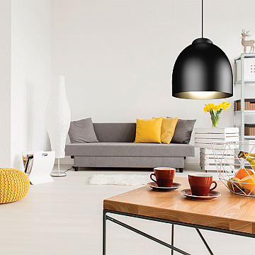 O Pendente Blum Da Blumenau Iluminação se destaca por proporcionar um destaque especial para o ambiente agregando beleza e funcionalidade. Ideal para o uso em cozinhas, bancadas, área de festas e churrasqueiras os pendentes de alumínio possibilitam decorar ambientes com requinte e versatilidade.Possui corpo em alumínio, soquete E27, atende as variações de tensão entre 110V e 220V e tem disponibilidade em três opções de cores, sendo preto com interior dourado, chumbo com interior dourado e branco.