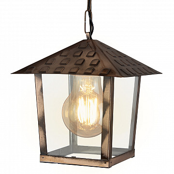 Pendente Colonial Quadrado Vidro Pontilhado - Cobre Liso