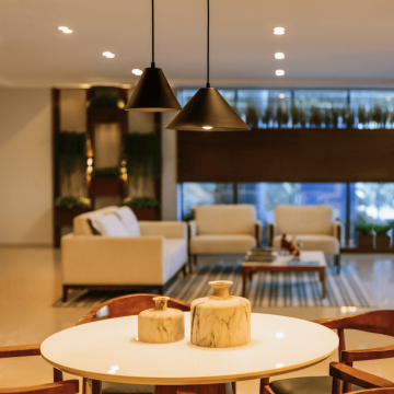 Pendente Madá Alumínio - Preto Liso Pendente Madá da Blumenau Iluminação é uma solução super versátil que se adapta com... Marca: Blumenau Iluminação Orçar Pendente Madá Alumínio - Preto Liso Pendente Madá da Blumenau Iluminação é uma solução super versátil que se adapta com facilidade a diferentes estilos decorativos, valorizando projetos que buscam personalidade e funcionalidade. Pode ser utilizado de forma individual ou em conjunto, permitindo composições que fortalecem o conceito do ambiente e criam uma iluminação acolhedora. Sua aplicação é ideal para cozinhas, bancadas, salas de estar, áreas gourmet, espaços de convivência e projetos comerciais que exigem estética alinhada ao uso diário. Com design contemporâneo e estrutura em alumínio, o Pendente Madá oferece robustez e acabamento de qualidade. Compatível com lâmpadas LED A60 ou Filamento LED A60, utiliza soquete E27, garantindo flexibilidade na escolha da lâmpada. O cabo regulável de até 1m proporciona maior liberdade na instalação, adaptando-se a diferentes alturas e facilitando a aplicação tanto em projetos residenciais quanto comerciais. Produzido no Brasil, o Pendente Madá conta com pintura a pó e acompanha kit de fixação, reforçando o cuidado com o acabamento e a qualidade do produto.